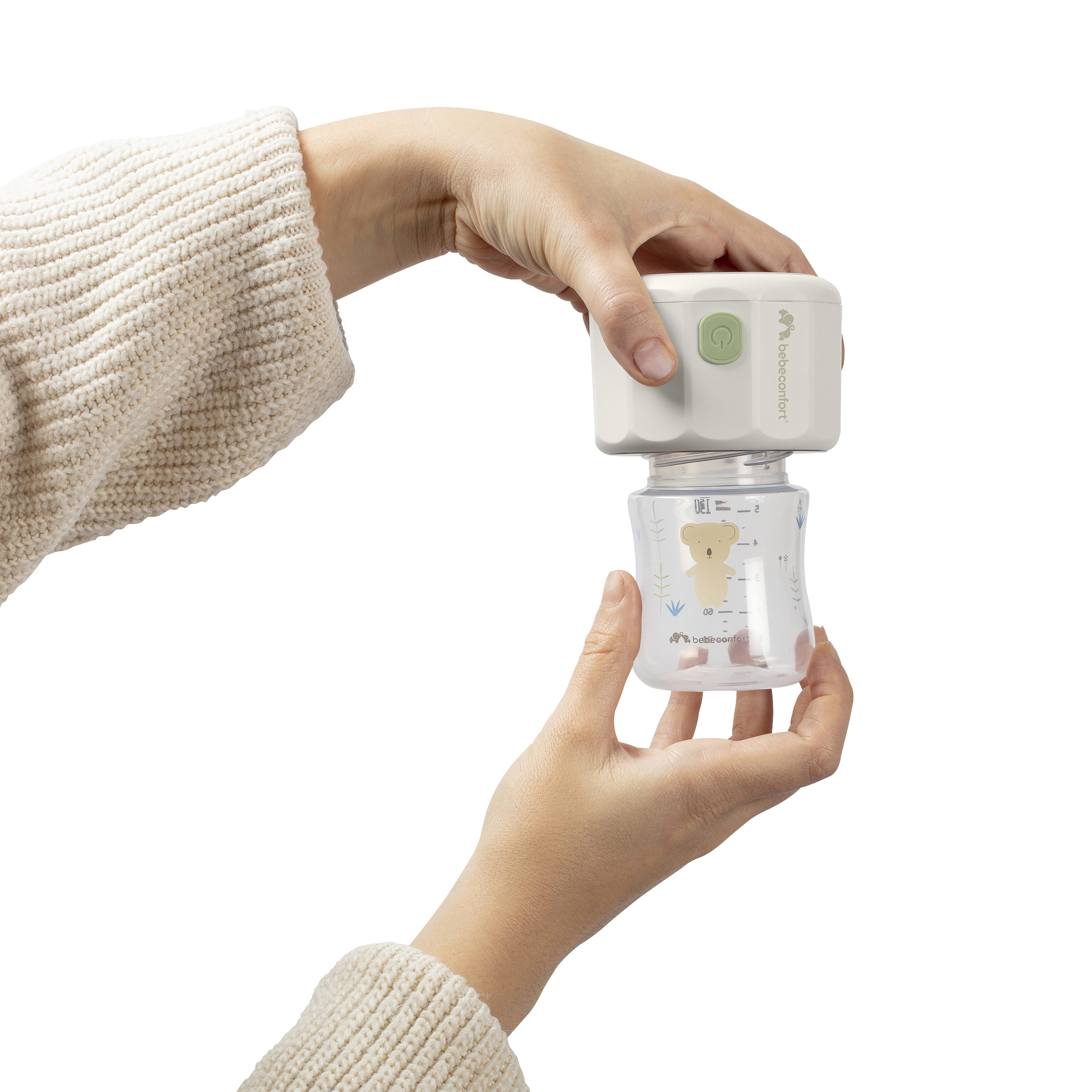 Uwaga: butelki Bebeconfort są wykonane z PP (polipropylenu) i ich wymiary mogą się nieznacznie różnić ze względu na różne czynniki. To sprawia, że przykręcenie niektórych butelek o podgrzewacza może być trudniejsze niż pozostałych. W razie problemów spróbuj wkręcić butelkę powoli do prawidłowej pozycji.