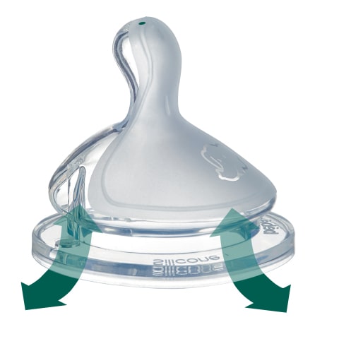 Każda butelka posiada specjalny smoczek, który zapewnia precyzyjny przepływ dostosowany do wieku dziecka. Smoczek S służy od momentu narodzin, smoczek M od 3 miesiąca życia, a smoczek L od 6 miesiąca życia.