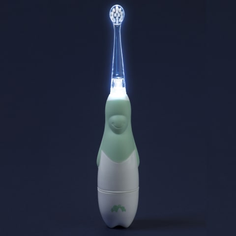 - Szczoteczka podświetla wnętrze jamy ustnej dziecka, dzięki czemu dokładnie widać, gdzie odbywa się mycie zębów.