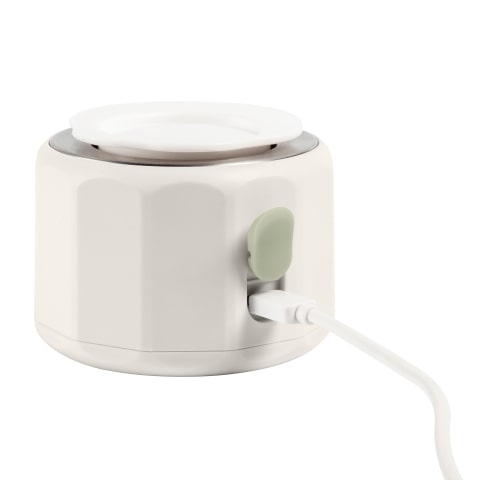 Przenośny podgrzewacz do butelek Pocket jest wyposażony w płytkę grzewczą zasilaną z akumulatora litowo-jonowego. Ustaw podgrzewacz do butelek spodem do góry i przykręć do niego butelkę wypełnioną wodą lub mlekiem. Następnie ustaw go na podstawie na płaskiej powierzchni, po czym naciśnij włącznik, aby rozpocząć podgrzewanie. Możesz podgrzewać mleko dosłownie wszędzie, nawet gdy nie masz dostępu do gniazdka elektrycznego.