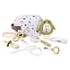 W skład zestawu wchodzą 1 termometr kąpielowy, 1 para nożyczek w podstawie i 1 obcinacz do paznokci w podstawie; 1 szczotka o miękkim włosiu z lusterkiem; 1 grzebień z zaokrąglonymi zębami.