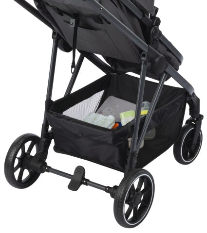 - Łatwo dostępny kosz na zakupy pomieści do 3 kg zakupów lub niezbędnych akcesoriów dla dziecka.